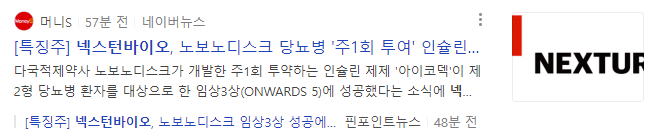 노보노디스크 임상3상 성공이라는 소식으로 넥스턴바이오는 금일 상한가에 진입하였습니다.