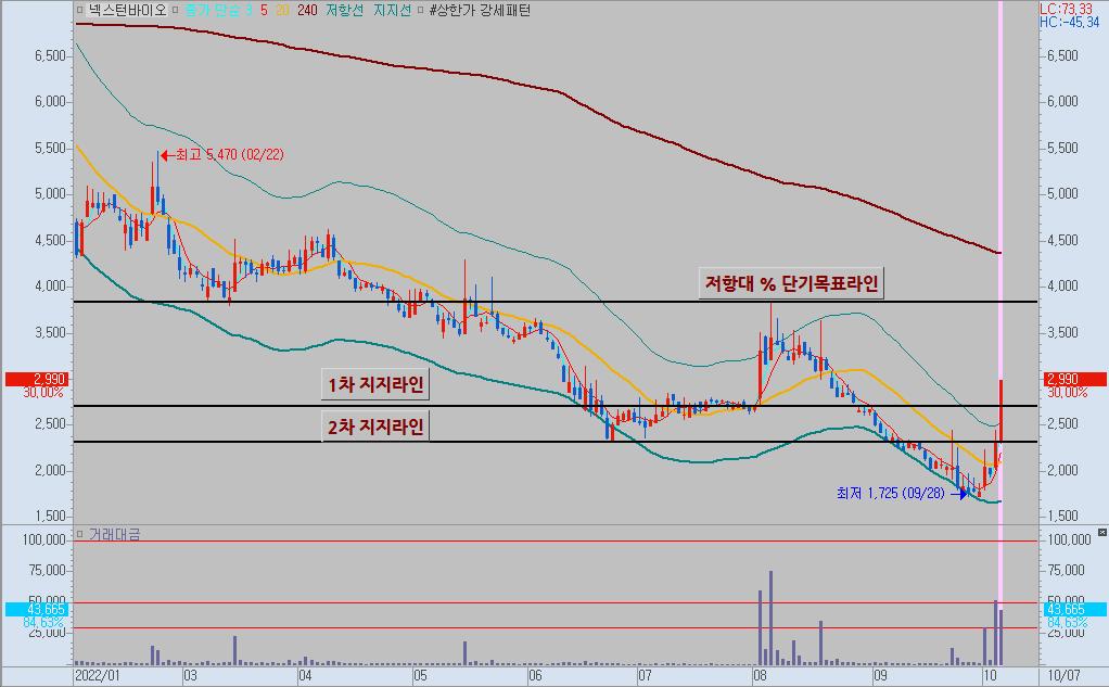 위의 이미지는 넥스턴 바이오의 일봉차트입니다.