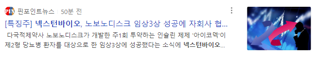 노보노디스크 임상3상 성공이라는 소식으로 넥스턴바이오는 금일 상한가에 진입하였습니다.