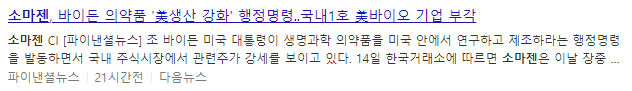 소마젠은 미국 바이든 대통령이 미국내에서 의약품 생산을 강화하는 행정명령을 내린 것에 대한 수혜기대감으로 9월 14일 상한가를 기록했습니다.