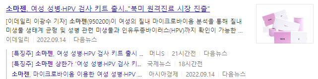 소마젠은 각종 검사 키트를 출시하며, 북미 원격진료 시장에 진출한다는 소식으로 9월 14일 상한가를 기록했습니다.