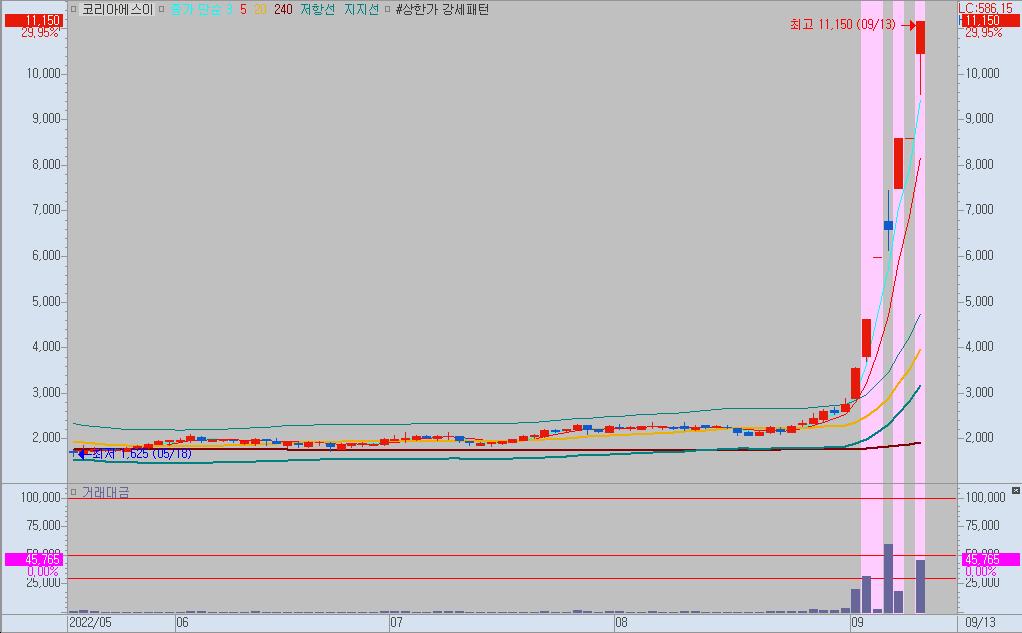 2022년 9월 13일 코리아에스이는 지피클럽에 피인수된다는 이슈가 지속되면서 상한가를 기록했습니다.