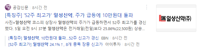✅ 일성신약 종목 히스토리