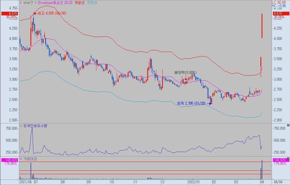 상한가 분석 : 비비안(002070)