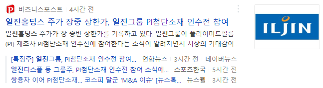 일진그룹이 PI첨단소재 예비압찰에 참여했다는 소식에 상한가를 기록하였습니다. (+29.92%)