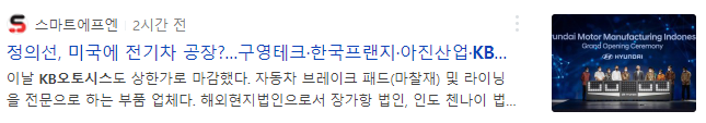 KB오토시스는 정의선 현대차그룹 회장이 미국 내 전기차 생산공장 부지 선정을 위해 미국 출장을 갔다는 소식으로 급등하였습니다. 미국에서 현대차그룹 공장과 협력 관계를 맺고 있다는 사실과 미국 조지아 공장건설 사실이 부각되면서 상한가를 기록하였습니다.