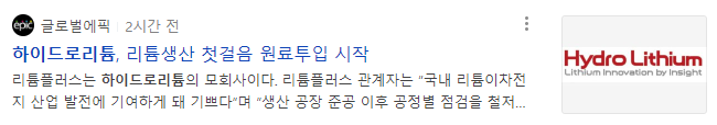 하이드로리튬은 최대주주인 리튬플러스가 수산화리튬 양산을 시작했다는 소식으로 오늘 상한가를 기록했습니다.