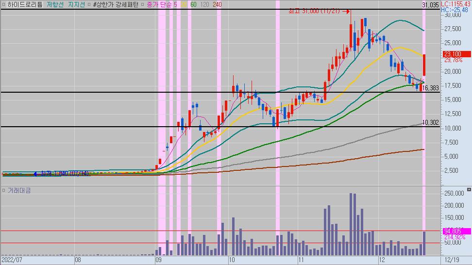 하이드로리튬은 지난 9월 바닥구간에서 급등하기 시작해 11월 최고점을 찍은 상황입니다.