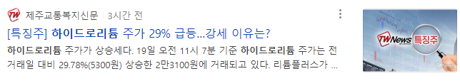 하이드로리튬은 코리아에스이의 사명이 변경된 것으로 수산화리튬 생산을 사업에 추가하면서 급등하였습니다.