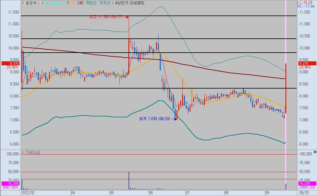 엘엠에스는 바닥구간에서 강하게 호재성 이슈와 함께 강하게 상승하며 상한가를 기록했습니다.
