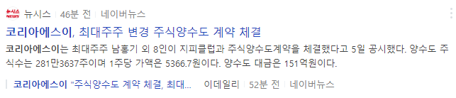 코리아에스이는 최대주주변경을 수반하는 주식양수도 계약 체결 이슈로 급등중에 있습니다.