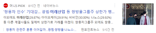 단기관점에서야 큰 문제가 없겠지만 본업의 성장으로 주가가 상승한 것이 아니기 때문에 '쌍용차 인수 기대감'이 사라지면 빠르게 하락할 수 있으니 투자에 주의가 필요합니다.
