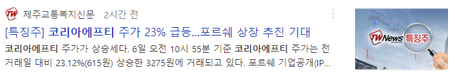 폭스바겐이 이사회 회의를 통해 포르쉐 IPO를 추진한다는 소식으로 코리아에프티의 주가가 급등하였습니다.