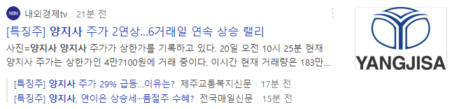 양지사가 특별한 이슈없이 2일 연속 급등하면서 역대 최고가를 기록중에 있습니다.