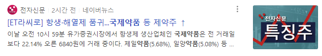 오늘 국제약품이 강세를 보인 것의 배경에는 항생제 및 해열제 등 감기약 품귀현상이 있었습니다.